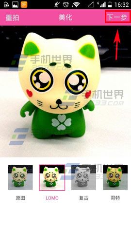 3)进去之后进行拍照,拍完照后可以进行下方美化,接着点击【下一步】。