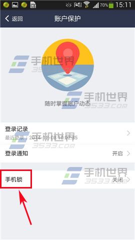 2)点击【手机锁】,在界面点击开启【手机锁】即可。(如下图)