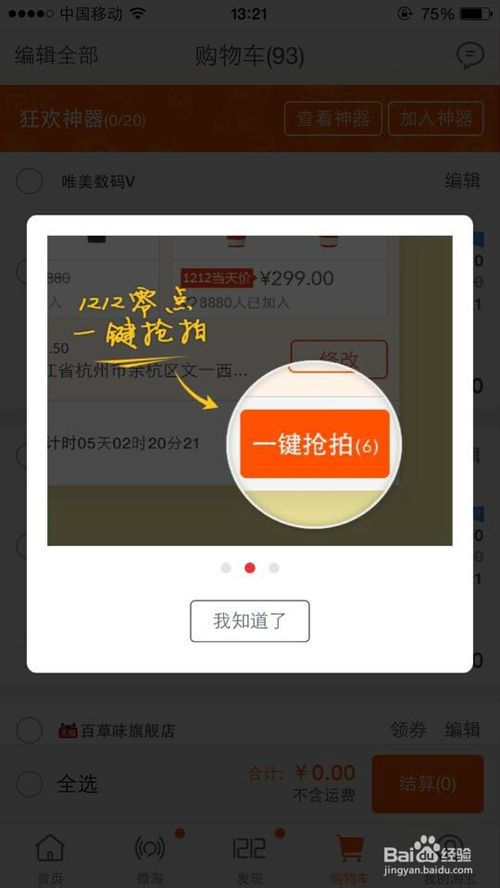 双十二淘宝优惠力度都很大,那些款式好看,质量过硬,优惠力度给力的宝贝,我们基本上都抢不到,一开抢分分秒就没有了,下面分享12.12如何使用淘宝快速抢单,提前做准备,以手机为例,电脑同理,需要的朋友可以参考下。