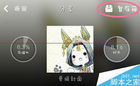 4、选择完成,点击“下一步”,再次为你转码,转码完成会进入“分享”界面,你可以点击右上方的“暂存”,也可以点击下面的“分享”。