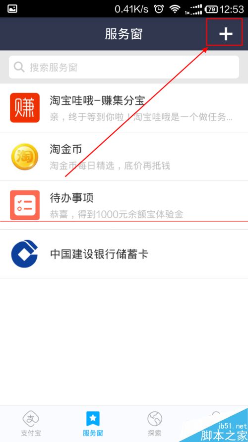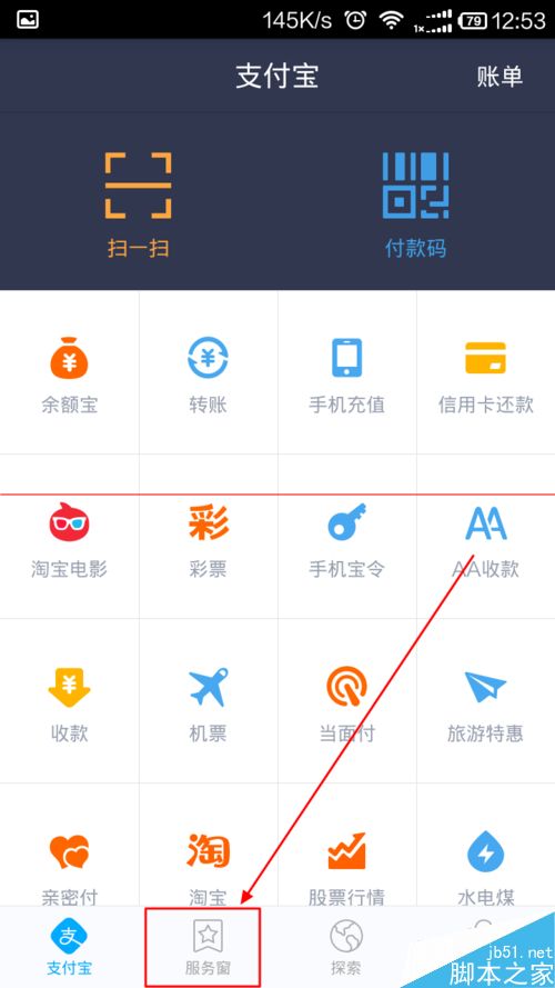 2、在支付宝的主界面下方,找到服务窗按钮,点击进入服务窗。