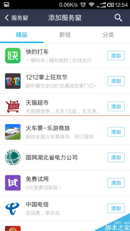 3、在服务窗中找到添加,进入添加服务。