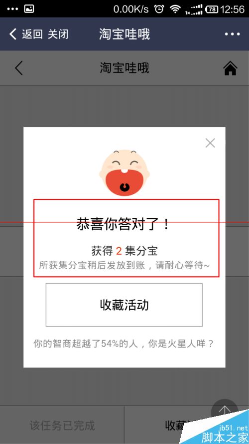 9、答案正确的话,就可以获得集分宝,本活动结束,参与下一个活动,继续答题,获取集分宝。