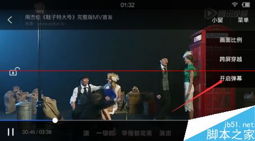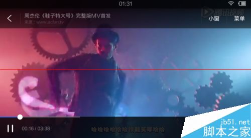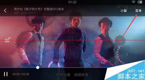 3、全屏观看视频的时候,我们可以看到视频右上方的菜单字样,我们点击它