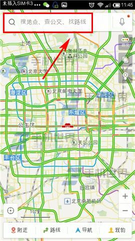 1)打开百度地图,点击上方【搜索框框】,输入【购物中心的名字】后点击【搜索】。(如下图)