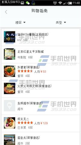 3)进入到【购物指南】,这里就可以看到每个楼层有什么类型的店铺啦。(如下图)