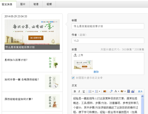 4、上传自己喜欢且合适的封面图后,填写标题和内容