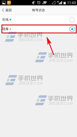 2)然后点击【账号】,最后选择【隐身】点击一下就可以了。(如下图)