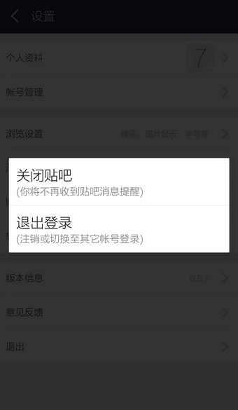 3.1在设置里选择【退出贴吧】
