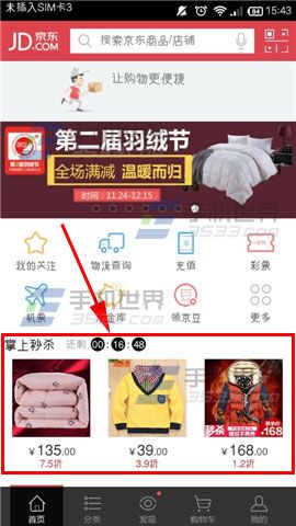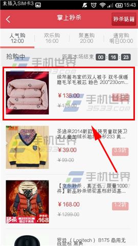 1)打开手机京东,小编点击【掌上秒杀】给大家示范下,选择其中一个【商品】。(如下图)