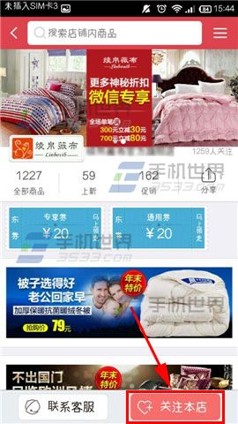 3)进入到店铺后点击右下方的【关注本店】就收藏成功啦。(如下图)