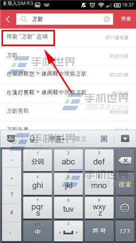 2)在搜索框框里输入【宝贝的品牌】名称,下面就会出现牵引,点击【搜索“名称”店铺】,就会跳转到你搜索的品牌店铺啦。(如下图)