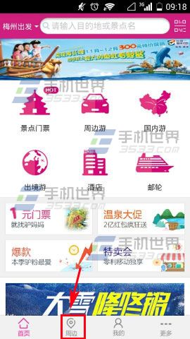 1)首先先打开【驴妈妈旅游】,进去之后点击【周边】。(如下图)