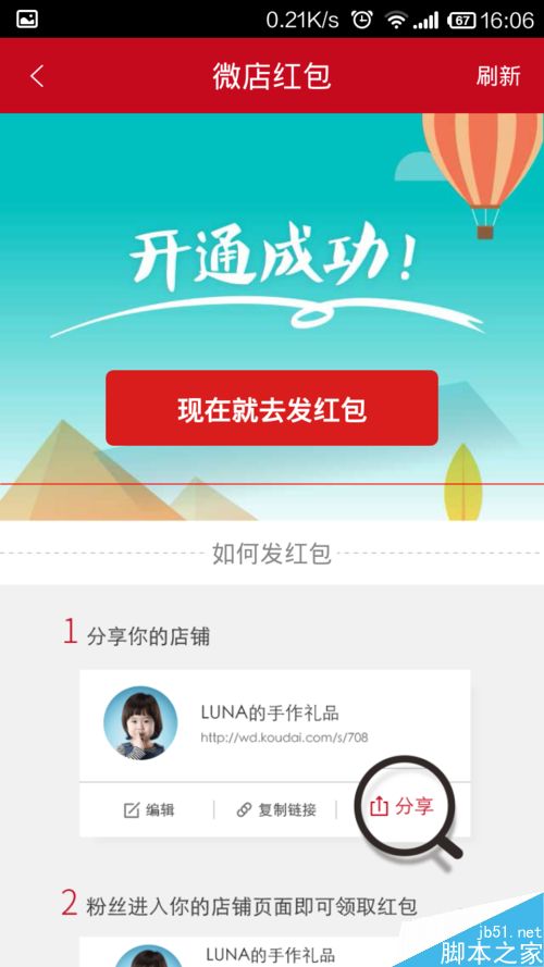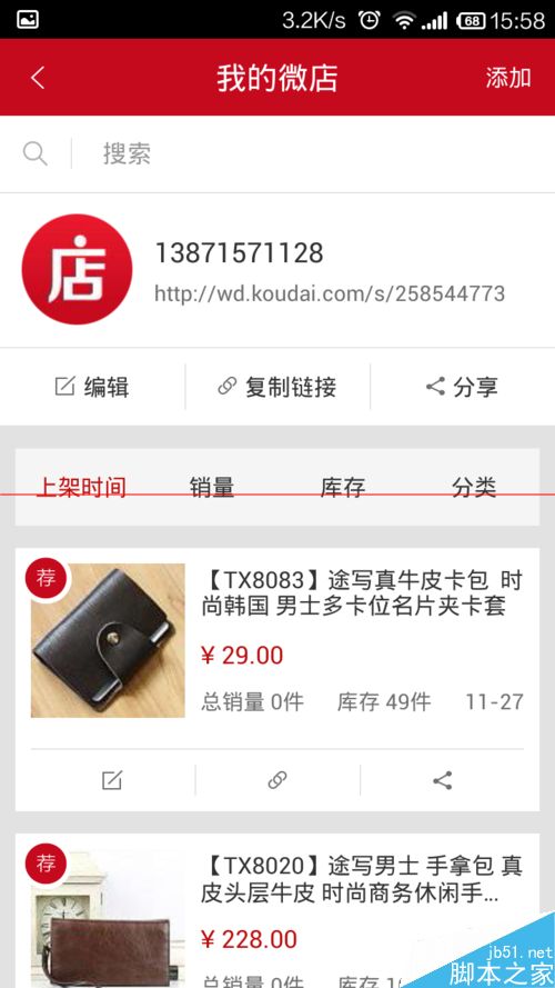 5、点击店铺下的分享
