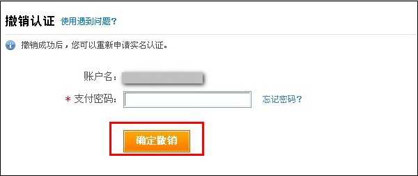 3、点击【撤消本次认证申请】后,输入支付宝账户的支付密码;(忘记支付密码怎么办? )