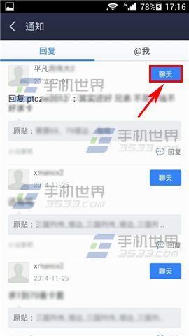 2)然后找到你点击消息旁边的的【聊天】就可以直接进入到聊天窗口了。(如下图)