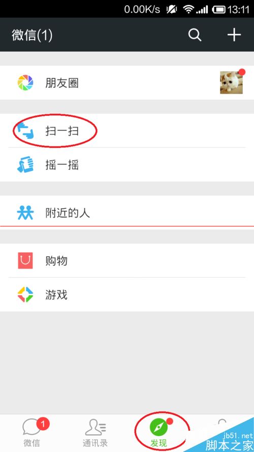 1、打开微信软件,找到界面底部”发现“栏,找到”扫一扫“栏。