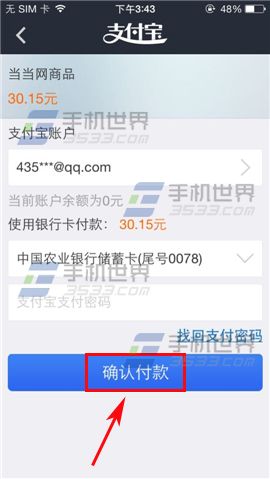 3)跳转支付宝中心输入支付密码,点击【确认付款】即可。(如下图)