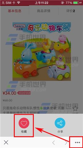 1)首先打开折800,在首页选择要查看的商品点击进入,进入界面在右下方点击【三点】,弹出窗口点击【收藏】即可添加收藏夹。(如下图)
