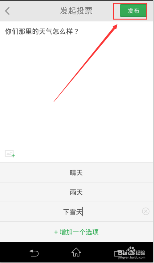 3、编辑完你的内容之后,然后选择右上角的发布,之后就可以看到自己发起的投票了