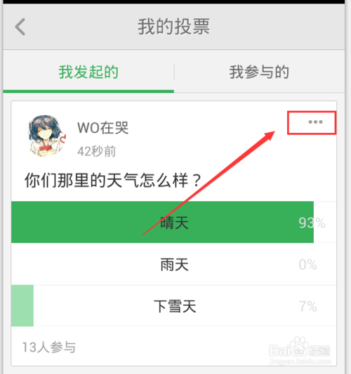 1、找到自己发起的投票,然后投票右上角有三点,点击
