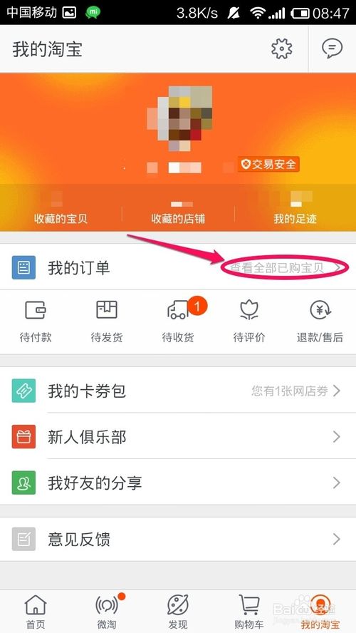 6、我们也可以查看以前购买的东西物流信息!点击查看全部已购宝贝!