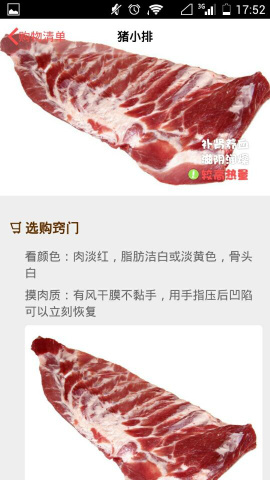 1)首先先打开【美食杰】,进去之后点击【购物清单】,接着选择你要查看的食材点击【选购技巧】。(如下图)