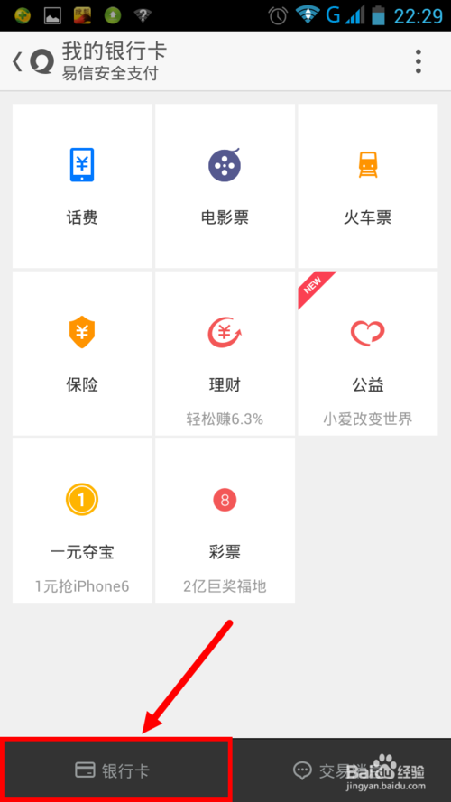 2、然后点击银行卡。