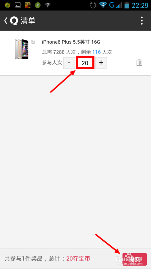 4、如果你选择了立即参与,则会跳出清单对话框,选择你要购买的人次,点击提交。
