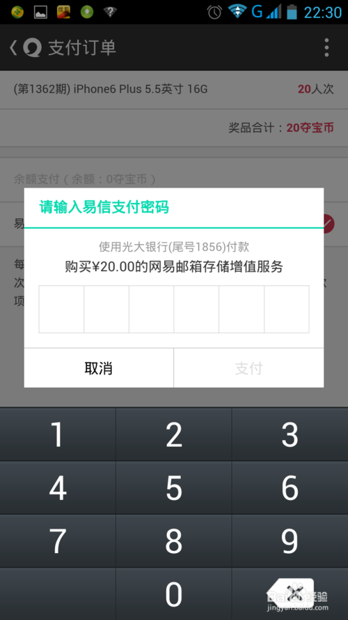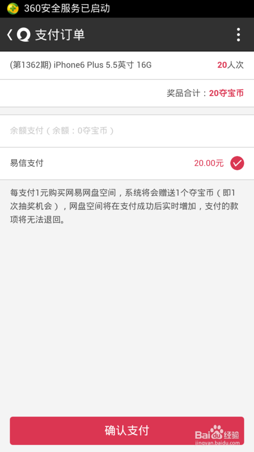 6、加入我们添加过多次清单,需要支付时选择查看清单,进入清单同一支付。点击提交即可进入支付订单页面,点击确认支付后输入密码即可完成夺宝。