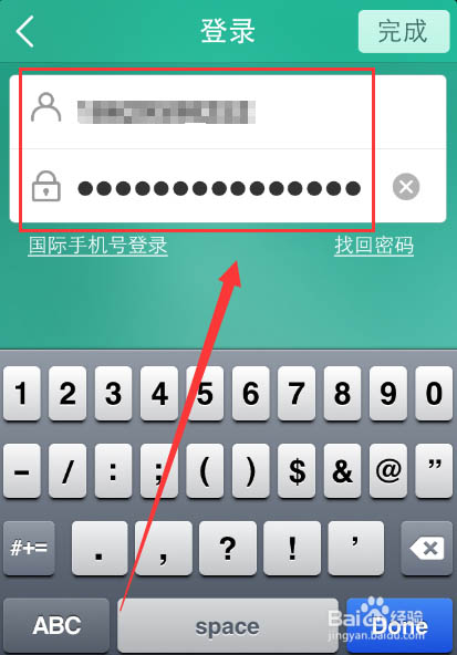 2、然后在打开的窗口输入易信账号和密码,再点击右上角的【完成】按钮进行登录。