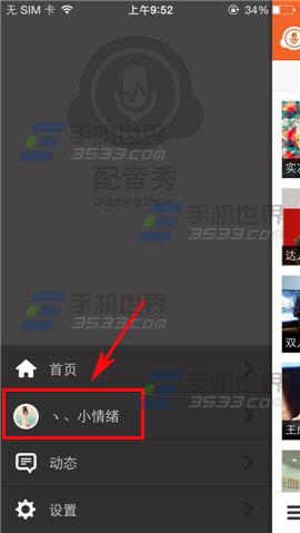 1)首先打开打开配音秀,在界面左下方点击【三横】,弹出窗口点击【用户账号名】。(如下图)