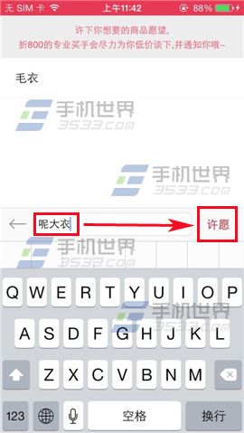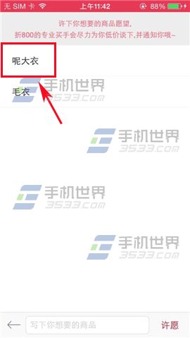 1)首先打开折800,点击【个人中心】,然后点击【我的心愿单】,进入界面在方框输入商品,点击【许愿】。(如下图)