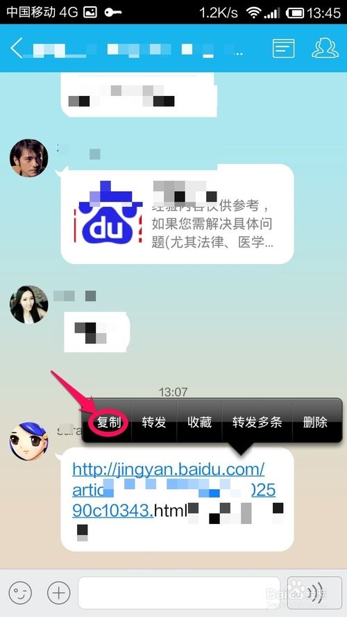 7、现在已经可以打开百度经验网站浏览了!如果我们群的好友想要我们给他投票怎么操作呢?用手长按群中的经验地址!然后选择复制地址!