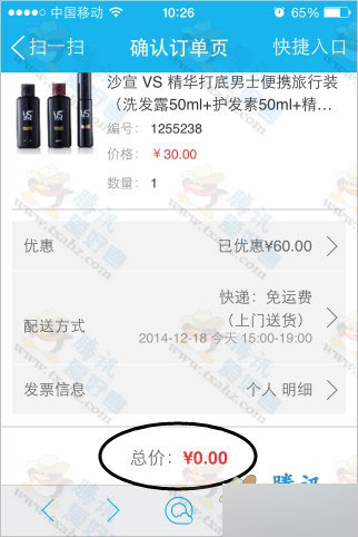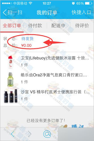 4、最后60元的商品变成0元,直接支付,便可坐等到货了。如下图: