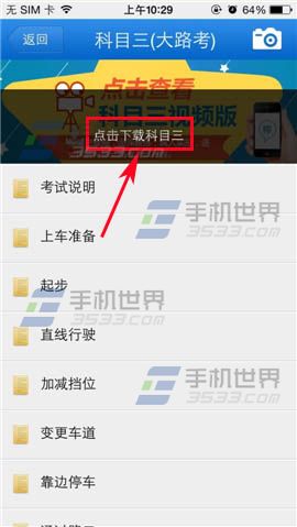 1)首先打开驾考宝典,在界面点击【科目三】,进入界面点击【下载科目三】即可开始下载。(如下图)