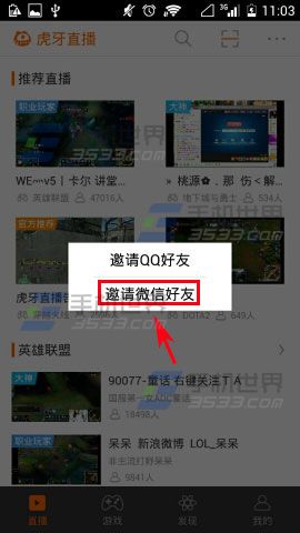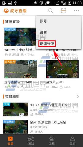 1)首先先打开【虎牙直播】,进去之后点击右上角的【三点】,弹出提示后点击【邀请好友】。(如下图)