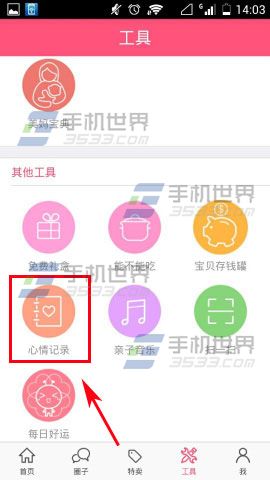 1)首先先打开【宝宝树孕育】,进去之后点击【工具】,接着点击【心情记录】。(如下图)