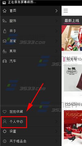 1)打开手机唯品会,点击左上角的【三】图标,然后点击【个人中心】。(如下图)