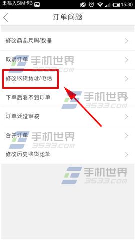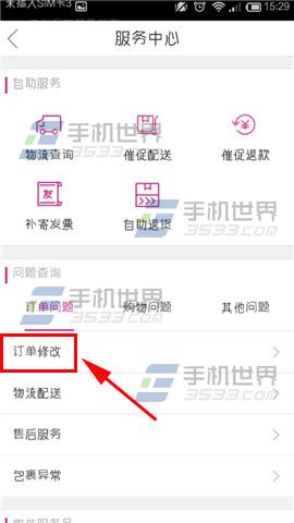2)点击【唯品客服】进入服务中心,因为什么原因要联系客服的得选择好对应的问题专区哦,小编先示范给大家看看,就以修改地址为例,首先点击【订单修改】。(如下图)