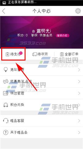 1)打开手机唯品会,点击左上角的【三】图标,再点击【个人中心】。(如下图)