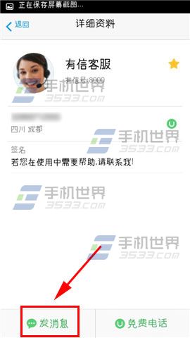 2)在TA的【详细资料】页面下方有【发消息】的按钮,点击进去就可以跟TA聊天啦,支持发送语音、文字、图片、表情跟地理位置哦。(如下图)