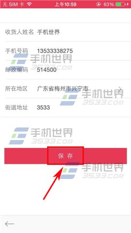 2)点击【添加地址】,进入界面输入收货人姓名、手机号码、邮政编码和详细地址,点击【保存】即可。(如下图)