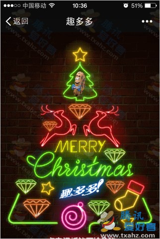1、微信关注“趣多多”后点击“圣诞壕礼”参与活动。如下图: