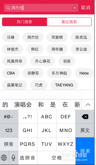 3、进入搜索页面后,输入周杰伦,点击搜索