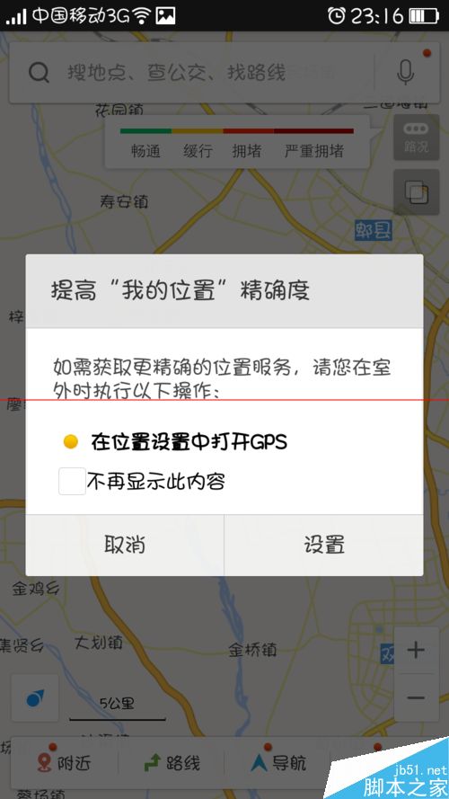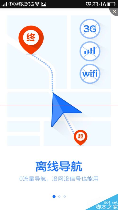 2、然后打开百度地图,系统会提示我们是否打开GPS导航,如果只是查询路线,不用打开,而且打开这个设置最好在室外,这样才会定位准确哦。