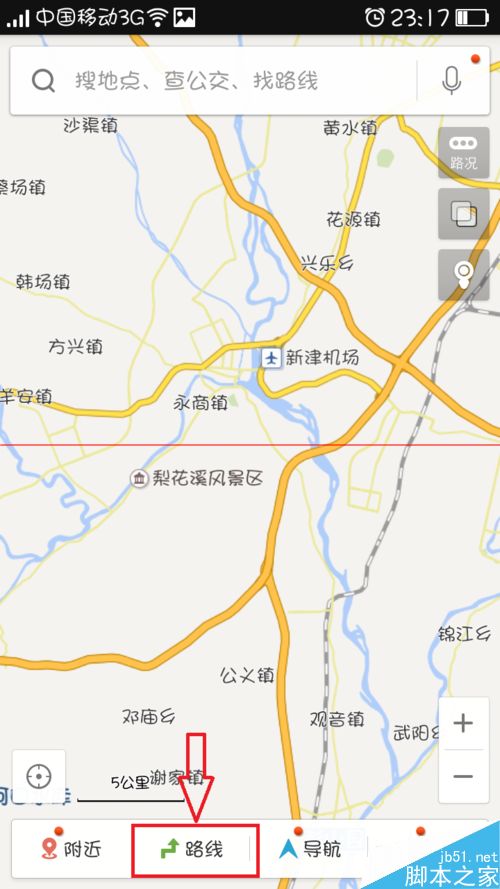 3、然后在页面下方栏中选择【路线】选项