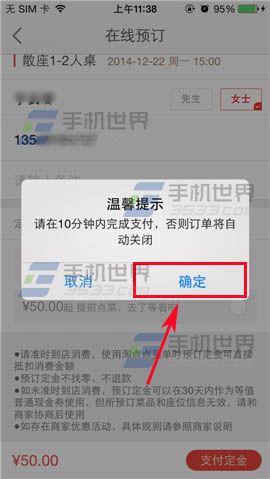 3)在右下方点击【支付定金】,弹出窗口点击【确定】即可跳转支付宝支付金额。(如下图)