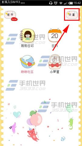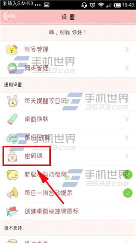 1)打开粉粉日记,点击【设置】,然后选择【密码锁】。(如下图)