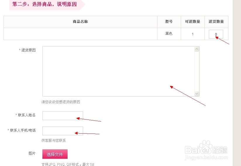 填写要退货的数量,退货原因,联系人姓名,联系电话等等,点击“提交退货申请”